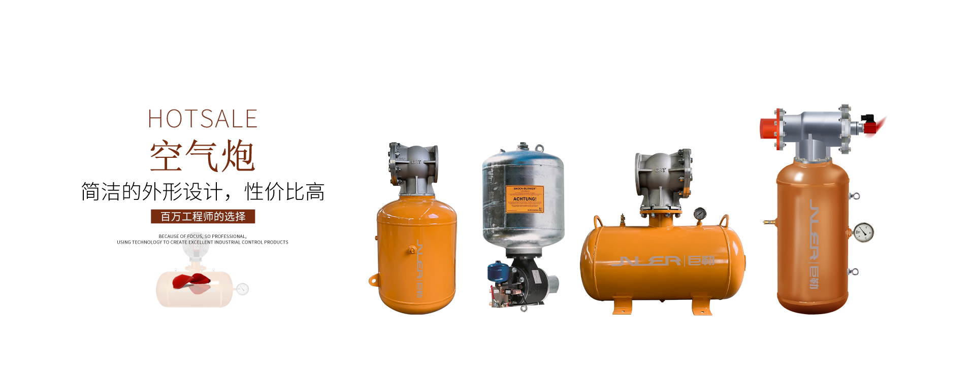 這種直接沖擊式空氣炮,動作特點是儲存在儲氣罐內(nèi)的壓縮空氣直接通過噴氣口沖擊物料,這一點很重要,因為噴氣速度越快,則沖擊力越大,有效作用范圍越大。