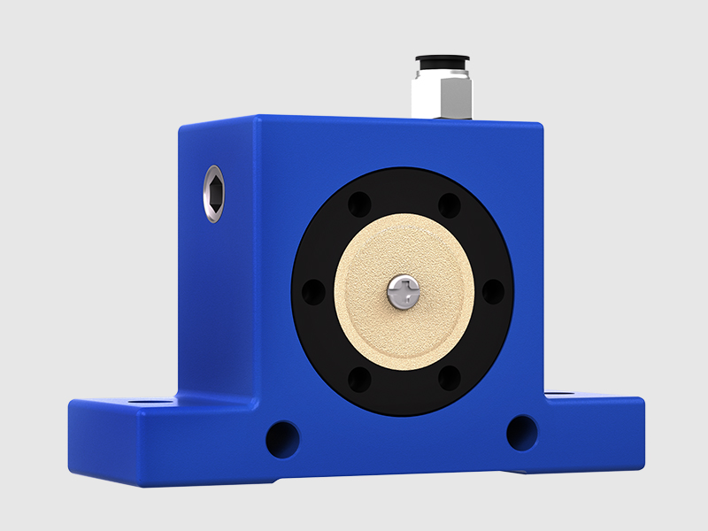 此小型氣動(dòng)振動(dòng)器設(shè)計(jì)簡(jiǎn)單,但仍可給出很強(qiáng)的離心力。殼體由擠壓鋁加工而成,精制鋼滾在其中滾動(dòng)。此鋼滾由兩片特制高抗沖擊塑料端蓋定位。在殼體上有兩個(gè)水平孔和兩個(gè)垂直孔,使安裝容易??諝鈴南嗷ゴ怪钡膬蓚€(gè)進(jìn)氣孔中的一個(gè)進(jìn)入。這兩個(gè)進(jìn)氣孔為標(biāo)準(zhǔn)管螺紋。為堵住不用的一個(gè)進(jìn)氣孔,隨機(jī)提供一個(gè)管塞。